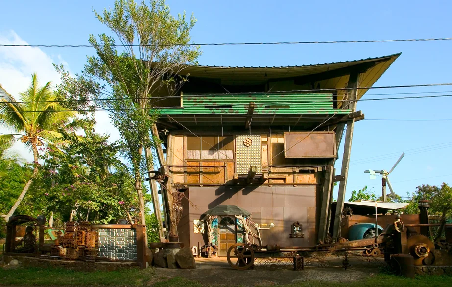 Tom deconstructed an old barn in Idaho, packed it in a shipping container, and built this amazing home in Kauai with all the reclaimed lumber.